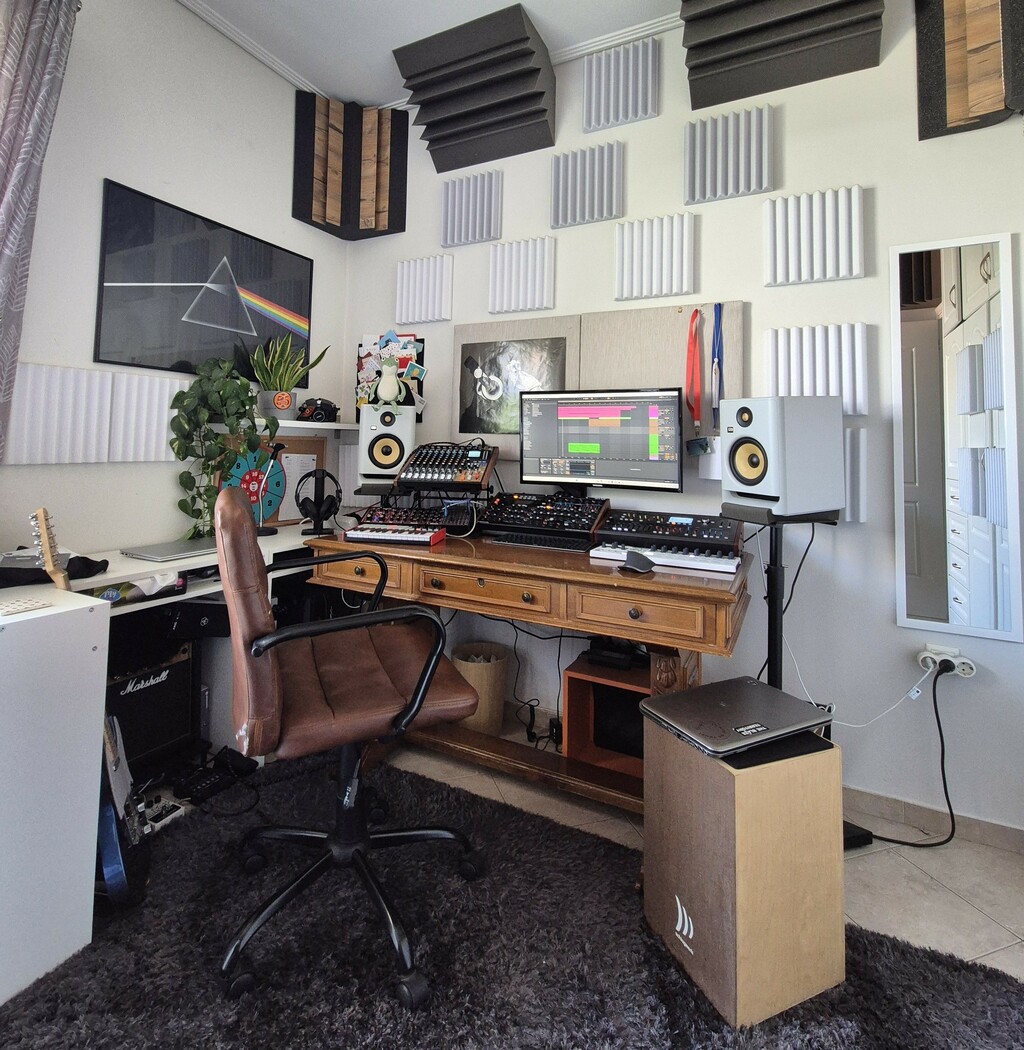 All sound is driven through the KRK RP7 Gen 4, which, coupled with acoustic treatment of the room, brings out great detail in my mixes. I also have 2 sets of headphones: AKG K361 and Sennheiser HD-25.